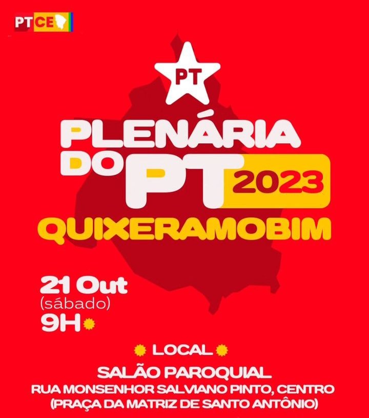 PLENÁRIA MUNICIPAL – Convidamos todos/ as os filiados e filiadas, aliados e aliadas e simpatizantes para nossa PLENÁRIA MUNICIPAL, será um importante momento de organização e mobilização partidária.