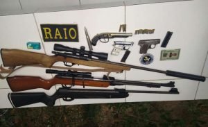 Cinco armas e munições de calibres variados foram apreendidas e uma motocicleta roubada foi recuperada, na noite da última quinta-feira (4), durante uma ação realizada por policiais do Comando de Policiamento de Rondas e Ações Intensivas e Ostensivas (CPRaio) da Polícia Militar do Ceará (PMCE). O material bélico e o veículo estavam em um imóvel situado na zona rural de Independência. Um homem identificado como Antônio Soares da Costa (52) foi preso pelos militares. O caso foi registrado na Delegacia Regional de Crateús da Polícia Civil do Estado do Ceará (PCCE).