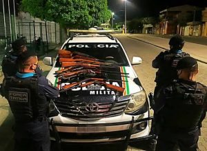 Segundo a Polícia, agentes da Força Tática estavam em patrulhamento pelo município e foram informados, via rádio, sobre denúncias feitas por populares indicando a presença de homens armados nas localidades de Vazante do Curu, Estribo e Bala, todas na zona rural de Canindé. A ação teve início em Vazante do Curu. Durante buscas na região, os policiais foram a um imóvel apontado como local utilizado para guardar armas de fogo. A casa, que estava vazia, passou por vistoria e nela foram encontradas cinco espingardas.