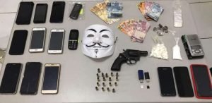 Com Antonio Claudio Marques Lima (38), o “Gaguinho”, os policiais civis apreenderam um revólver calibre 38, 18 munições, sacolas para embalar drogas, celulares, 52 porções de cocaína – pesando 45 gramas – e dinheiro. O homem, que já tem passagens pelos crimes de tentativa de homicídio, tráfico de drogas, estelionato e disparo de arma de fogo, foi autuado por porte ilegal de arma de fogo e tráfico de drogas. Outro alvo que foi capturado com drogas foi um adolescente de 17 anos. Ele estava com nove trouxinhas de maconha. Com quatro passagens por roubo, o adolescente vai responder a mais um ato infracional, desta vez, análogo ao crime de tráfico de drogas.