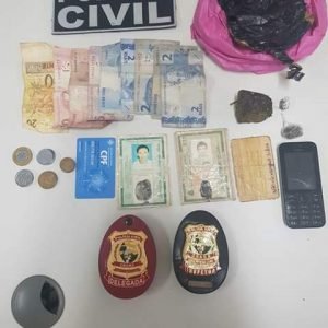 Com o infrator foi encontrada várias trouxinhas de uma substância assemelhada a maconha, bem como uma quantia em dinheiro oriunda da venda dos entorpecentes.