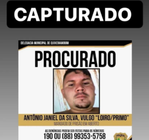 Dando continuidade às ações de combate a criminalidade no município de Quixeramobim/CE, a POLÍCIA CIVIL , na tarde de terça-feira (12), cumpre mandado de prisão por crime de homicídio, em desfavor do suspeito ANTÔNIO JANIEL DA SILVA, vulgo “LOURO“.