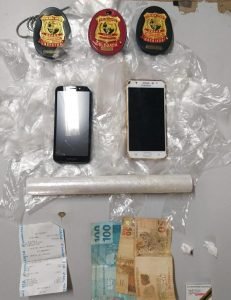 Ainda durante as diligências, dois aparelhos celulares, R$ 400,00 em dinheiro, 2,60 gramas de cocaína e sacos plásticos para o preparo de drogas foram apreendidos. Diante dos fatos, os suspeitos foram conduzidos à Delegacia de Morada Nova, onde encontram-se à disposição da Justiça.
