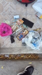 Durante a ação, os policiais civis realizaram buscas no imóvel e encontraram mais porções de entorpecentes, R$ 2.300 em espécie espalhados em diversos locais da casa, munições de calibres variados e um revólver com a numeração suprimida.