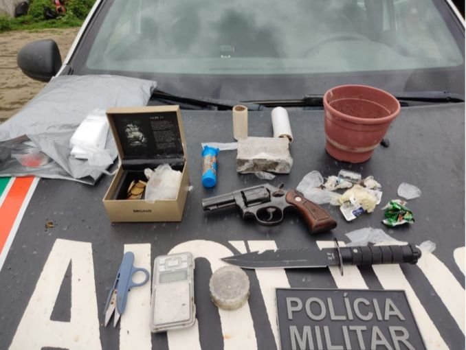 Ao se deslocarem para o local indicado, a equipe avistou o indivíduo com a arma em punho: um revólver calibre 38. Na ocasião, também foi apreendida uma tesoura, embalagens para comercializar drogas, 15 gramas de cocaína, 271g de maconha, munições e dinheiro.