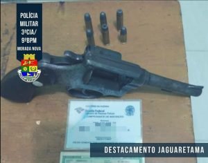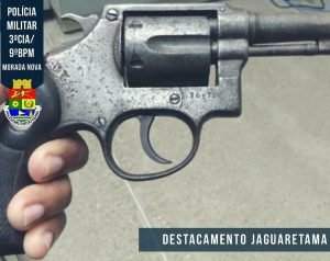 Ao verificarem os policiais encontraram a arma, o acusado foi identificado como E. DO N. O., natural de Morada Nova-CE, a arma era um revolver calibre 38 com 06 munições intactas e com numeração N° 78572,  o mesmo foi apresentado a Delegacia de Jaguaribe.