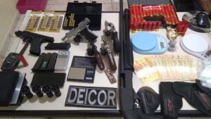 No momento da incursão não houve nenhuma reação por parte de preso. Após autorizada a entrada em sua residência, foi feita uma busca e encontradas cinco armas de fogo, sendo três revólveres calibre 38, um deles com numeração raspada; uma pistola calibre 380; uma espingarda calibre 12, estas duas últimas com registro, além de vasta munição para os três tipos de armamento (cerca de 160). Também foi encontrada uma pistola de marca Airsoft, além de maconha,cocaína e balança de precisão e a quantia de R$ 680,00.