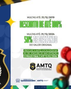 Para aderir ao Refis, os proprietários de veículos devem comparecer à sede da Autarquia Municipal de Trânsito, localizada na Avenida Dr. Joaquim Fernandes, nº 60, portando a documentação do veículo, ou realizar a solicitação por meio dos canais oficiais da AMTQ. O prazo para adesão segue até 13 de fevereiro de 2026.