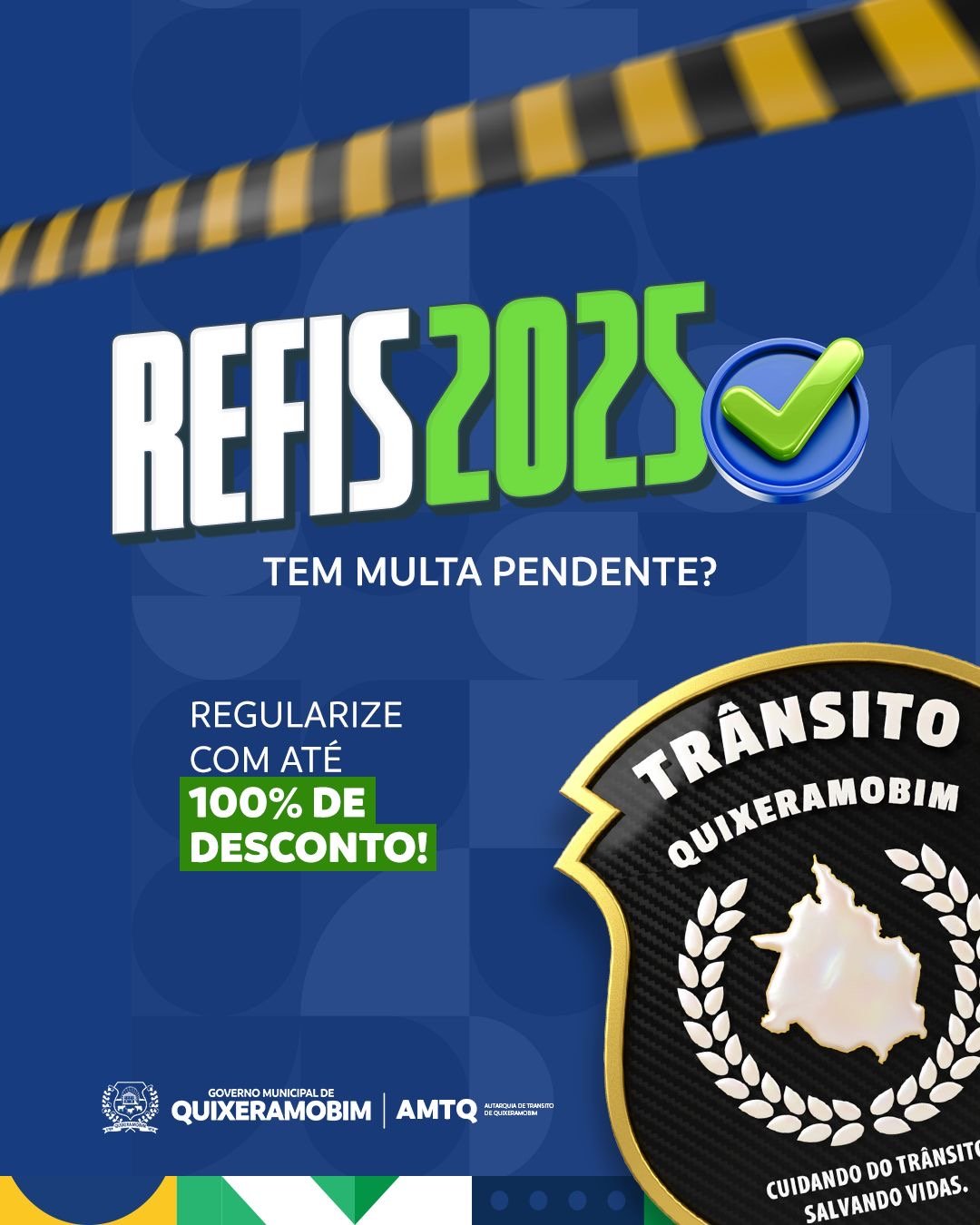 A Prefeitura de Quixeramobim, por meio da Autarquia Municipal de Trânsito (AMTQ), deu início nesta segunda-feira, dia 15, ao Refis do Trânsito, programa que tem como objetivo facilitar a regularização de débitos relacionados a multas de trânsito aplicadas até 31 de dezembro de 2024.