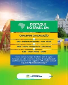 A colocação é resultado de um forte empenho da Prefeitura de Quixeramobim em trabalhar, sobretudo, pela educação de nossas crianças e adolescentes.