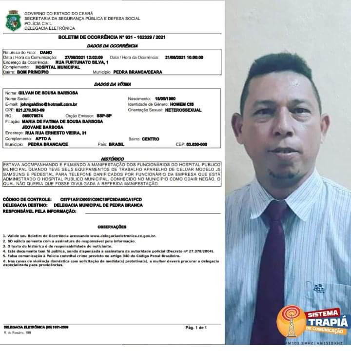 Segundo relatos do repórter Biro Belo integrante do Sistema Trapiá de Comunicação e da página “No Giro da Cidade” entrou com um boletim de ocorrência na última sexta-feira, 27, contra um funcionário da empresa Kactus após ter alguns equipamentos de trabalho danificados pelo servidor, durante o momento em que fazia a cobertura da manifestação de funcionários do hospital São Sebastião, no último dia 21 de agosto, por volta das 10h da manhã, quando os servidores da unidade hospitalar cobravam do prefeito interino Rogério Curdulino, o pagamento de seus vencimentos referente o mês de julho.