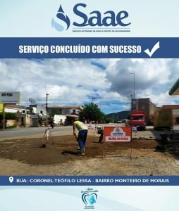 Na quarta-feira, 03, foi concluído um reparo na Rua Teófilo Lessa, na cidade de Quixeramobim. A equipe do SAAE vem realizando vários reparos na rede e conta com a ajuda da população para identificar as demandas que existe na cidade.