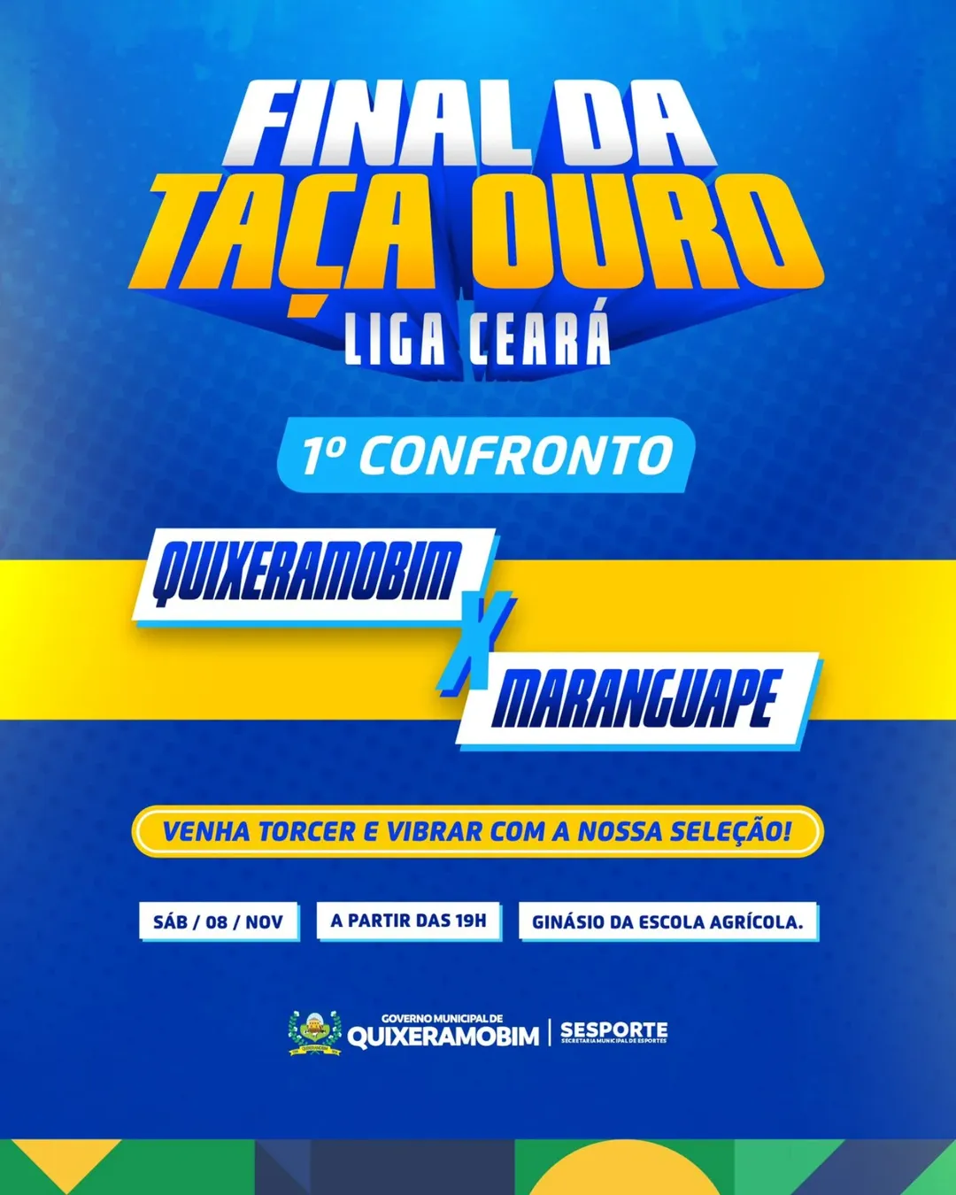 A Seleção de Quixeramobim entra em quadra neste sábado (8) para o primeiro confronto da grande final da Taça Ouro – Liga Ceará. A partida será realizada às 19h, no Ginásio da Escola Agrícola, e promete atrair grande público para apoiar o time da casa.