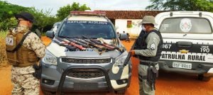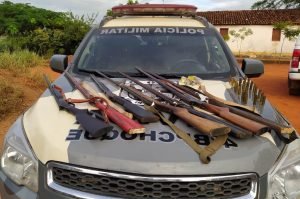 Uma ação conjunta que contou com equipes das Polícias Militares do Ceará (PMCE) e da Paraíba (PMPB) resultou nas apreensões de sete armas de fogo, entre espingardas e um rifle calibre 44. Dois suspeitos que estavam com o armamento foram capturados durante as diligências, que iniciaram em Ipaumirim, no Ceará, e tiveram desfecho no município de Cachoeira dos Índios, na Paraíba.