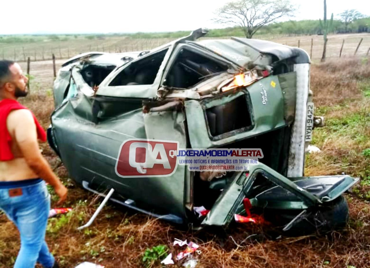 Veículo com três passageiros capota na zona rural de Quixeramobim.