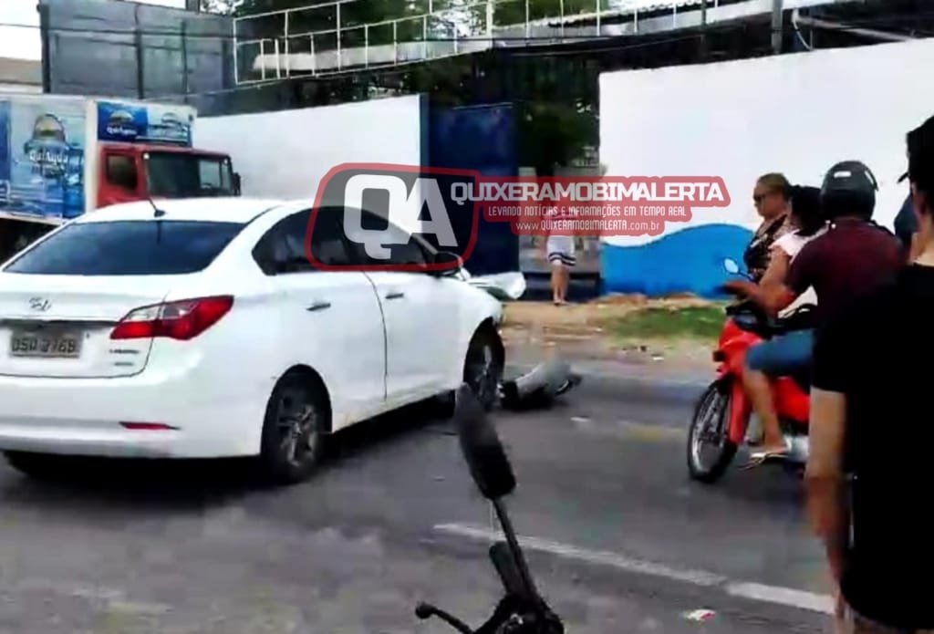Colisão entre motocicleta e carro é registrada na cidade de Quixeramobim.