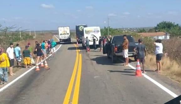 Ônibus da banda Forró de Qualidade se envolve em acidente de trânsito com vítima fatal na zona rural de Morada Nova.