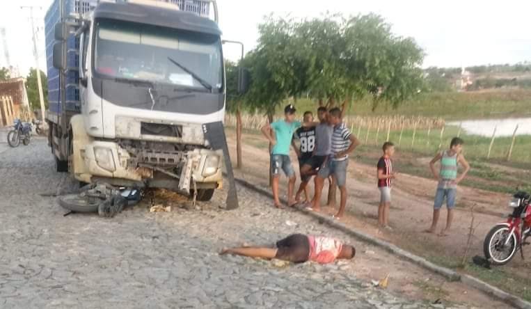 Colisão frontal entre motocicleta e caminhão deixa vítima fatal na zona rural de Quixeramobim.