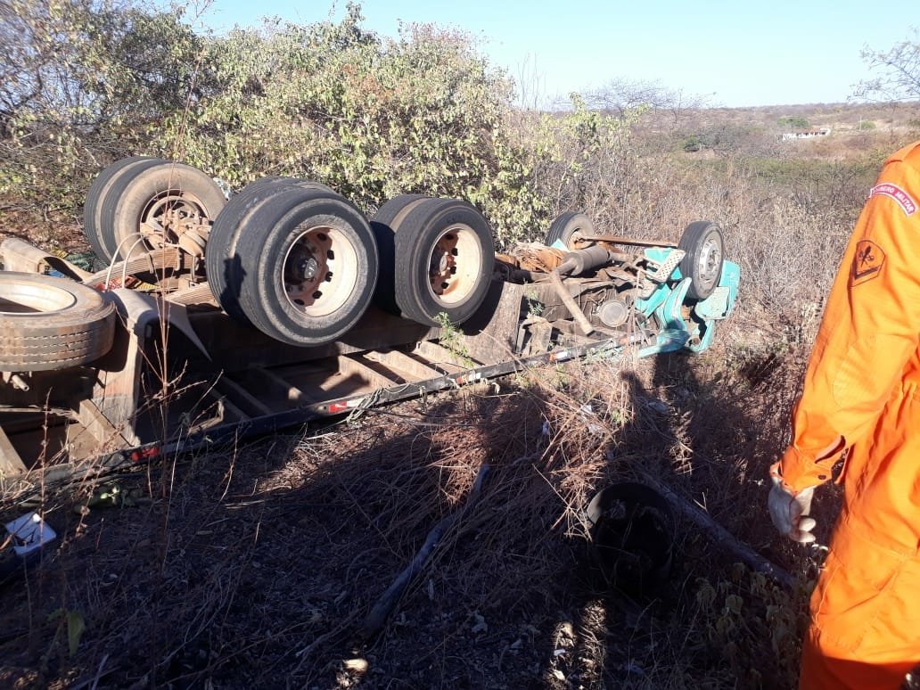 Caminhão carregado de banana capota e ocasiona a morte de uma pessoas na localidade de Flores, Quixeramobim.