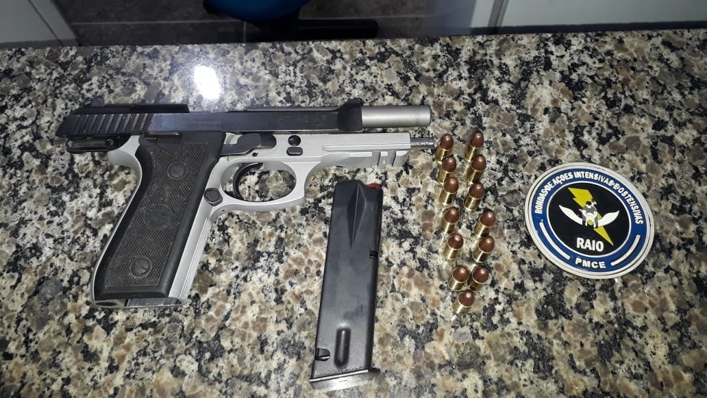 Uma abordagem realizada por uma equipe do Batalhão de Policiamento de Rondas Intensivas e Ostensivas (BPRaio) da Polícia Militar do Ceará (PMCE) resultou na apreensão de uma pistola 9 mm, na noite desse domingo (10), no bairro Passaré, na Área Integrada de Segurança 07 (AIS 7). Um suspeito foi preso. Os policiais militares estavam em […]