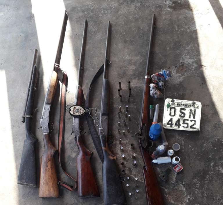 Cinco armas de fogo são apreendidas pela PMCE em Guaiuba.
