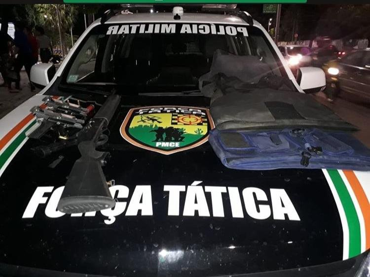 Polícia Militar apreende armas e coletes balísticos em Fortaleza.