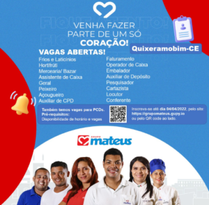 Prefeitura Municipal de Quixeramobim, Posto de atendimento ao trabalhador. OBSERVAÇÕES. ▪️ As informações sobre vagas não são dadas por telefone. ▪️ Os interessados devem dirigir-se ao Posto de Atendimento do SINE/IDT de Quixeramobim, munido dos seguintes documentos: RG, CPF e Currículo atualizado. Bolsa de Emprego desta quarta-feira 06/04/22 FUNÇÃO – CRITÉRIO ▪️ Embalador a mão (estagiário). […]