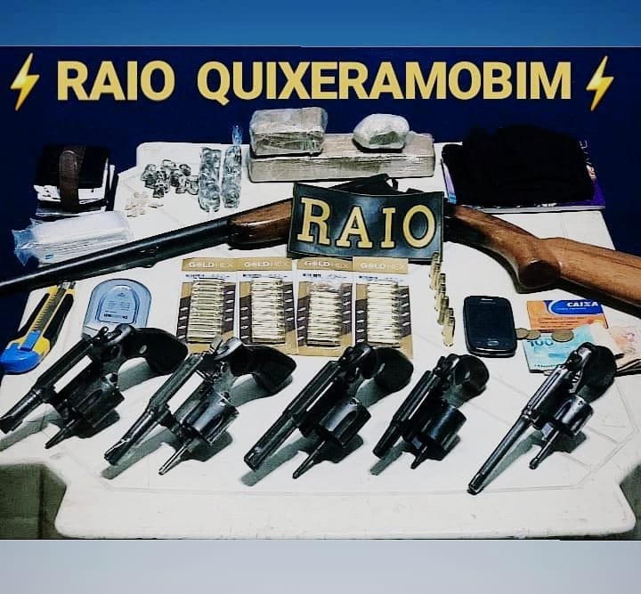 Equipes do BPRaio de Quixeramobim com apoio do BPRaio de Quixadá, realizaram uma grande apreensão de drogas e armas e prisões de membros da facção CV, na cidade de Quixeramobim.