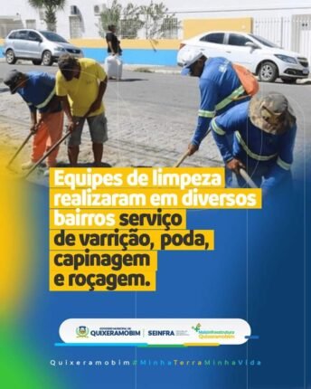 A Prefeitura de Quixeramobim, por meio da SEINFRA, realiza diariamente um forte trabalho para manter a nossa cidade limpa, bonita e organizada. As equipes de limpeza estiveram em diversos bairros e ruas fazendo varrição, poda, capinagem e roçagem. Trabalhar para manter uma cidade limpa e levar mais saúde e qualidade de vida para a população […]