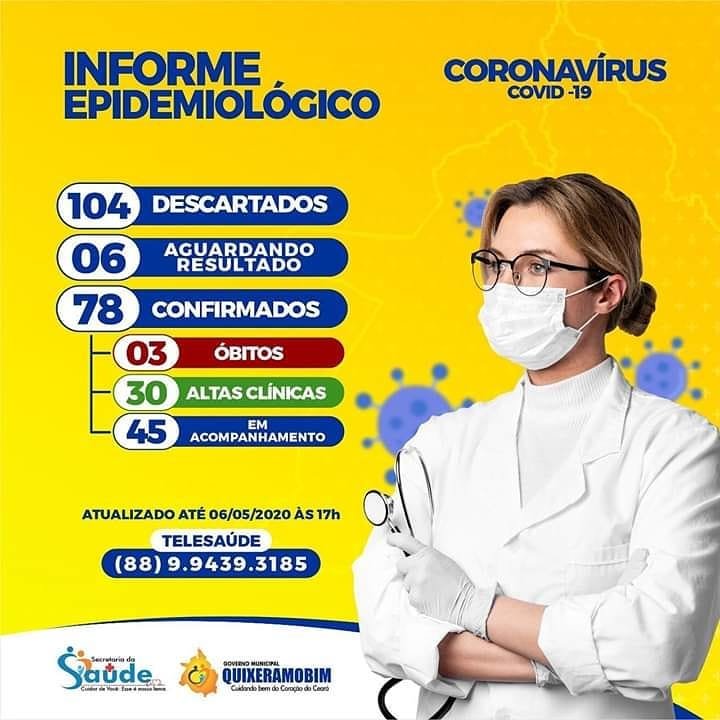 Quixeramobim tem 78 casos confirmados de coronavírus e três óbito.