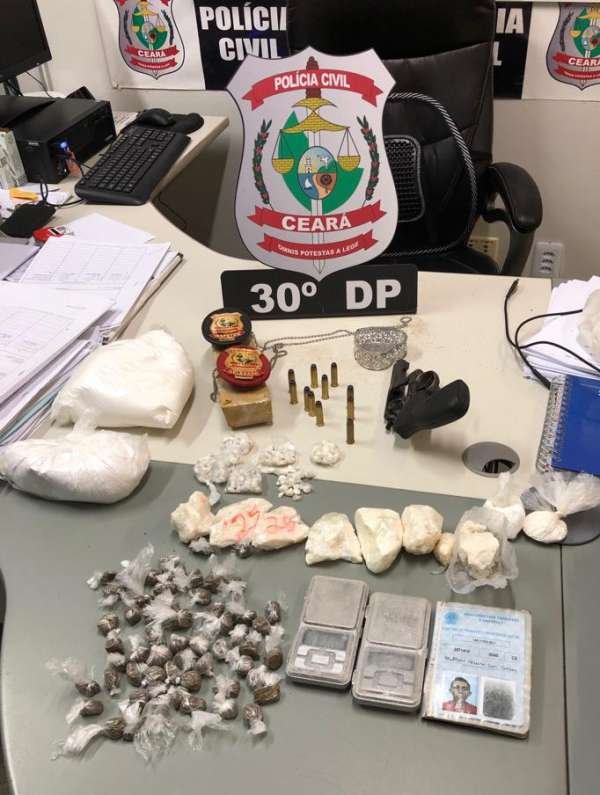 Um homem suspeito de tráfico de drogas foi preso, na tarde dessa segunda-feira (19), com arma, drogas e entorpecentes. A prisão, efetuada pelo 30º Distrito Policial (30º DP), ocorreu no bairro Conjunto Palmeiras, Área Integrada de Segurança 3 (AIS 3), em Fortaleza. Matheus Pereira dos Passos (23), que também vinha sendo investigado por integrar um […]