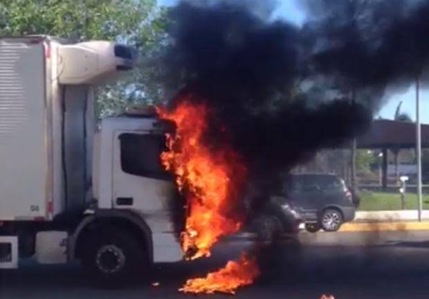 Caminhão pega fogo na CE 265 na cidade de Morada Nova.