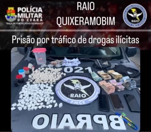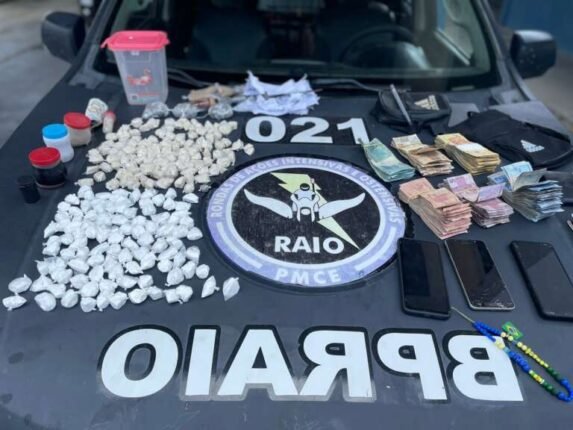 A Polícia Militar do Ceará (PMCE), por meio do Comando de Policiamento de Rondas e Ações Intensivas e Ostensivas (CPRaio), capturou, nesse domingo (27), no município de Quixeramobim, duas pessoas com 592 gramas de crack, 499 gramas de cocaína, 80 gramas de maconha, e uma quantia em dinheiro. Todo o material ilícito estava pronto para […]
