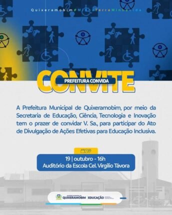 Prefeitura de Quixeramobim convida toda a população para o ato de divulgação das Ações Efetivas para Educação Inclusiva
