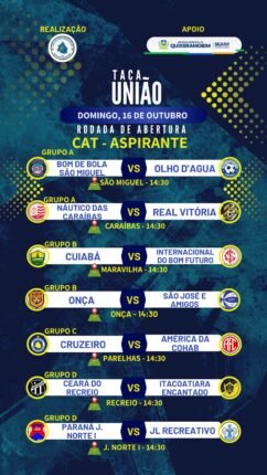 Neste domingo, 16 de outubro, iniciará mais uma edição da Taça União, a terceira edição promete, grandes jogos e grandes equipes, no total de 16 equipes da cidade e interior, dividos em 4 grupos com 4 equipes cada, passando os 2 melhores de cada grupo para a fase eliminatória no estádio Carneirão, dessas 8 equipes […]