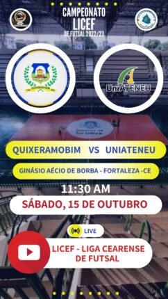 Neste sábado, dia 15 de outubro, a nossa seleção de futsal voltará a quadra em partida válida pela 2° rodada da Liga Cearense de Futsal, o escrete Quixeramobinense enfrentará a forte equipe do Uniateneu. A partida será realizada no Ginásio Aécio de Borba em Fortaleza/CE, as 11h00 com transmissão ao vivo pelo YouTube no canal […]