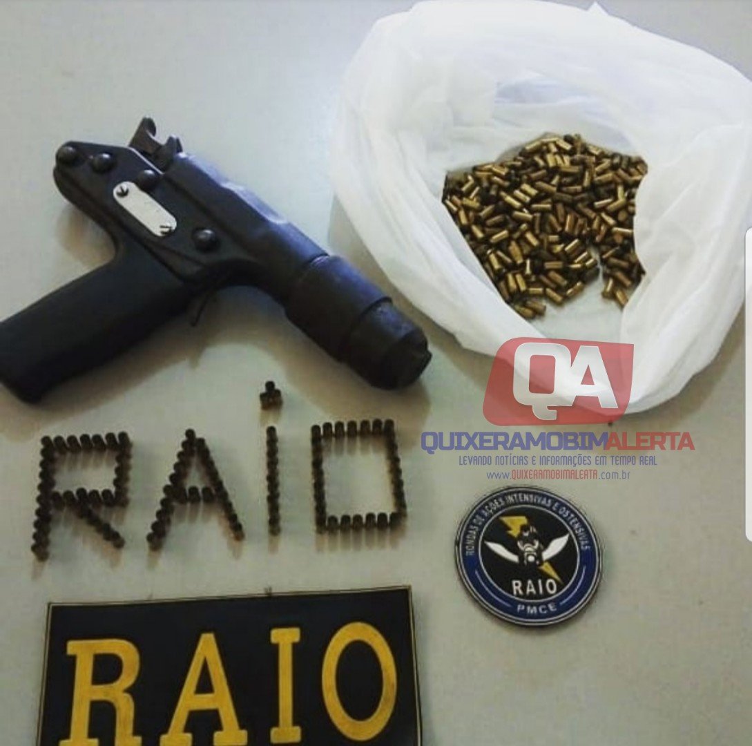 Policiais do BPRaio de Quixeramobim realizam apreensão munições e efetuam prisão de acusado.