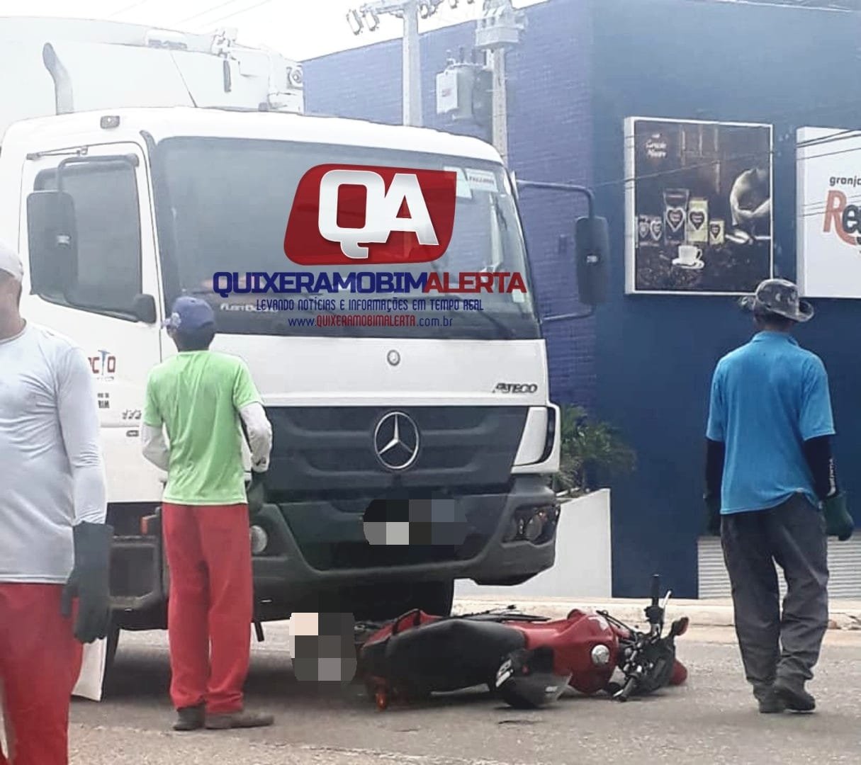 Colisão envolvendo motocicleta e caminhão de coleta de lixo é registrada na cidade de Quixeramobim.