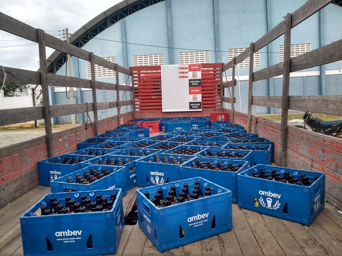 Polícia Civil de Quixeramobim recupera parte de carga subtraída de um depósito de bebidas.