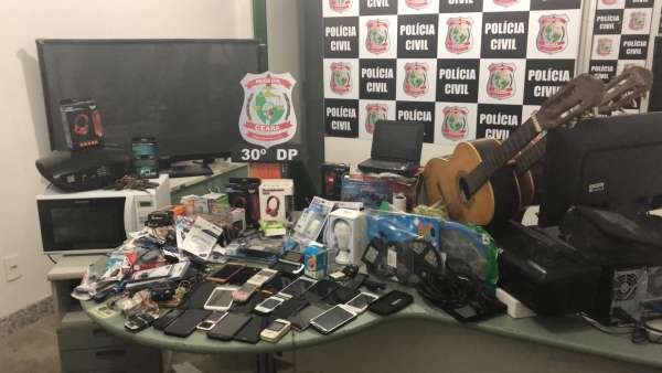 Uma ação realizada por equipes da Polícia Civil do Estado do Ceará (PCCE), nessa quinta-feira (11), resultou prisão de um homem e de uma mulher e na apreensão de vasto material fruto de roubo. Entre os itens apreendidos estavam notebooks, aparelhos celulares, peças de motocicletas, entre outros. Os produtos estavam na residência do casal, no […]