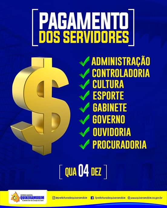 Prefeitura Municipal de Quixeramobim disponibiliza calendário de pagamentos dos servidores.