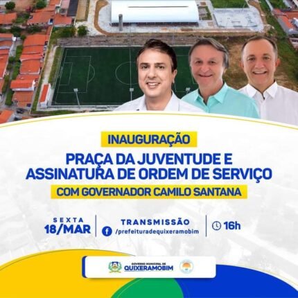 Governador Camilo Santana vem a Quixeramobim para inauguração da Praça da Juventude e assinatura de ordem de serviço.