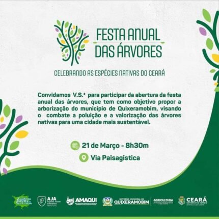 A festa anual das árvores, que tem como objetivo propor a arborização do município de Quixeramobim, visando o combate a poluição e a valorização das árvores nativas para uma cidade mais sustentável. Confira nossa programação.