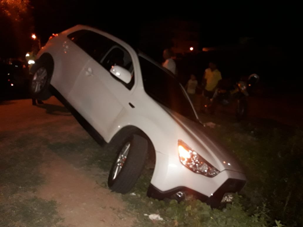 Carro de oficial de justiça cai em esgoto na cidade de Quixadá.