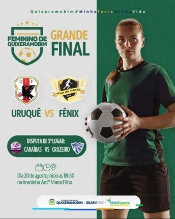 No próximo sábado (20), acontece a grande final da 1° Copa Feminina de Quixeramobim. A cidade vai parar para assistir a disputa do 3º lugar entre Cruzeiro x Caraíbas, a partir das 18h30. Na sequência, às 19h30, acontecerá a grande final Fênix x Uruquê.
