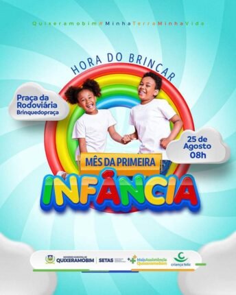 Agosto é o mês dedicado à primeira infância e por isso, a Prefeitura de Quixeramobim, por meio da Secretaria do Trabalho e Assistência Social/Programa Criança Feliz irá realizar o Hora do Brincar. Será amanhã, dia 25 de agosto, às 8h, na Praça da Rodoviária (Brinquedopraça). Terão diversas brincadeiras e atividades para as crianças. Traga seu […]
