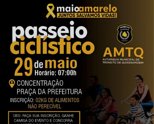 Autarquia Municipal de Trânsito de Quixeramobim, realizará um passeio Ciclístico de encerramento da Campanha Maio Amarelo.