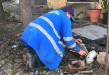 Equipe do SAAE realiza conserto de vazamento causado pelas raízes das plantas em Quixeramobim.