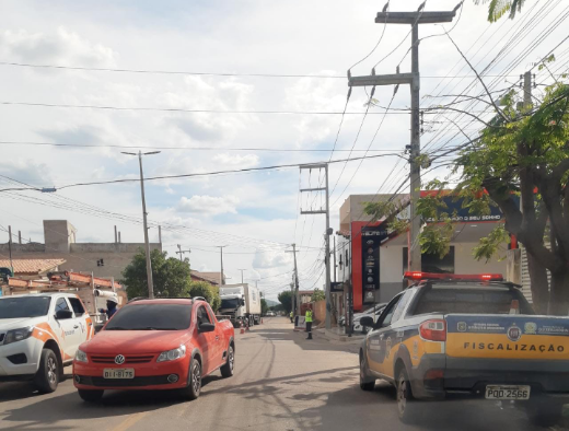 Caminhão bate em fios de internet e energia na cidade de Quixeramobim.