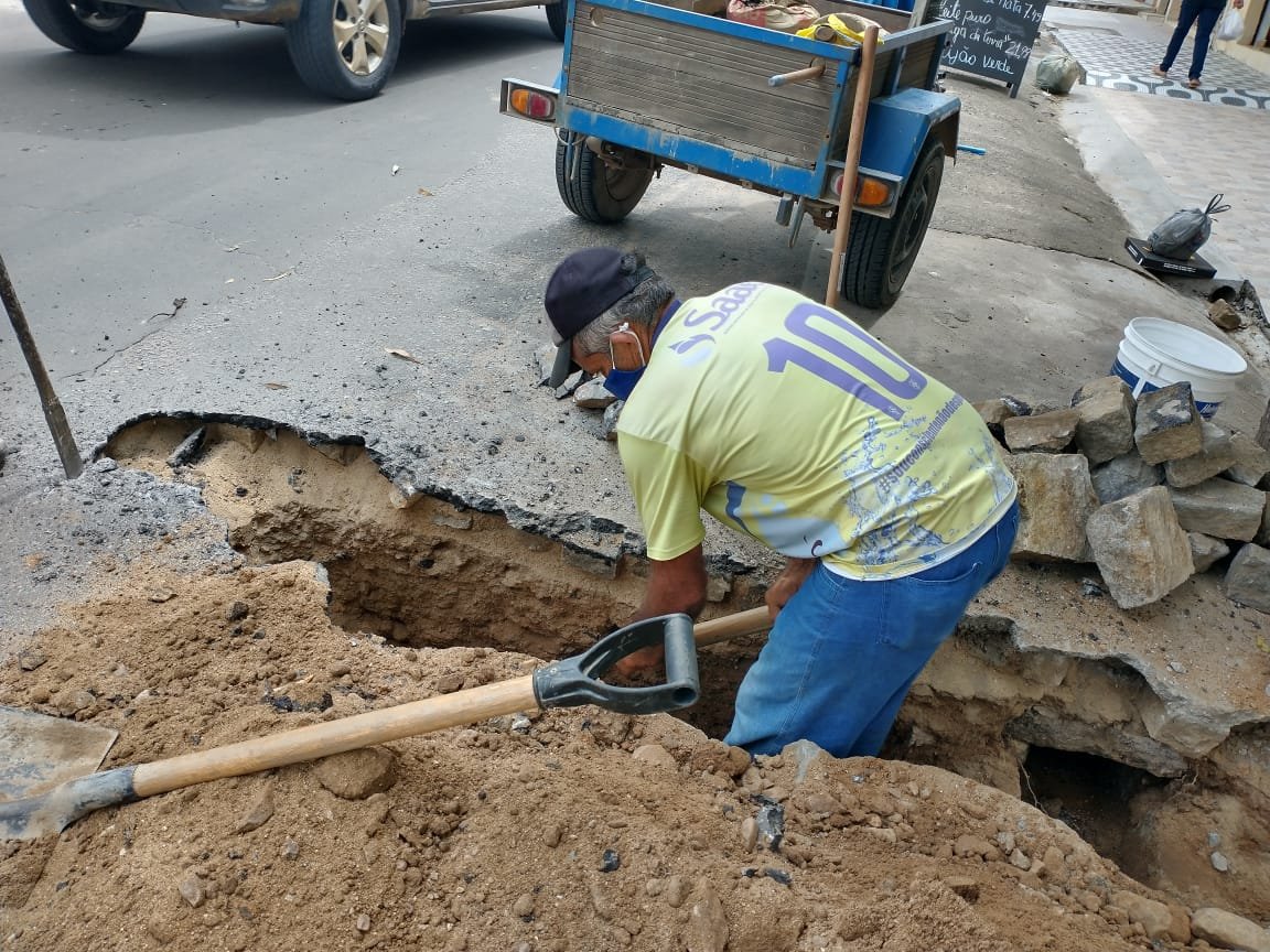 Saae está realizando reparos na tubulação do centro de Quixeramobim.